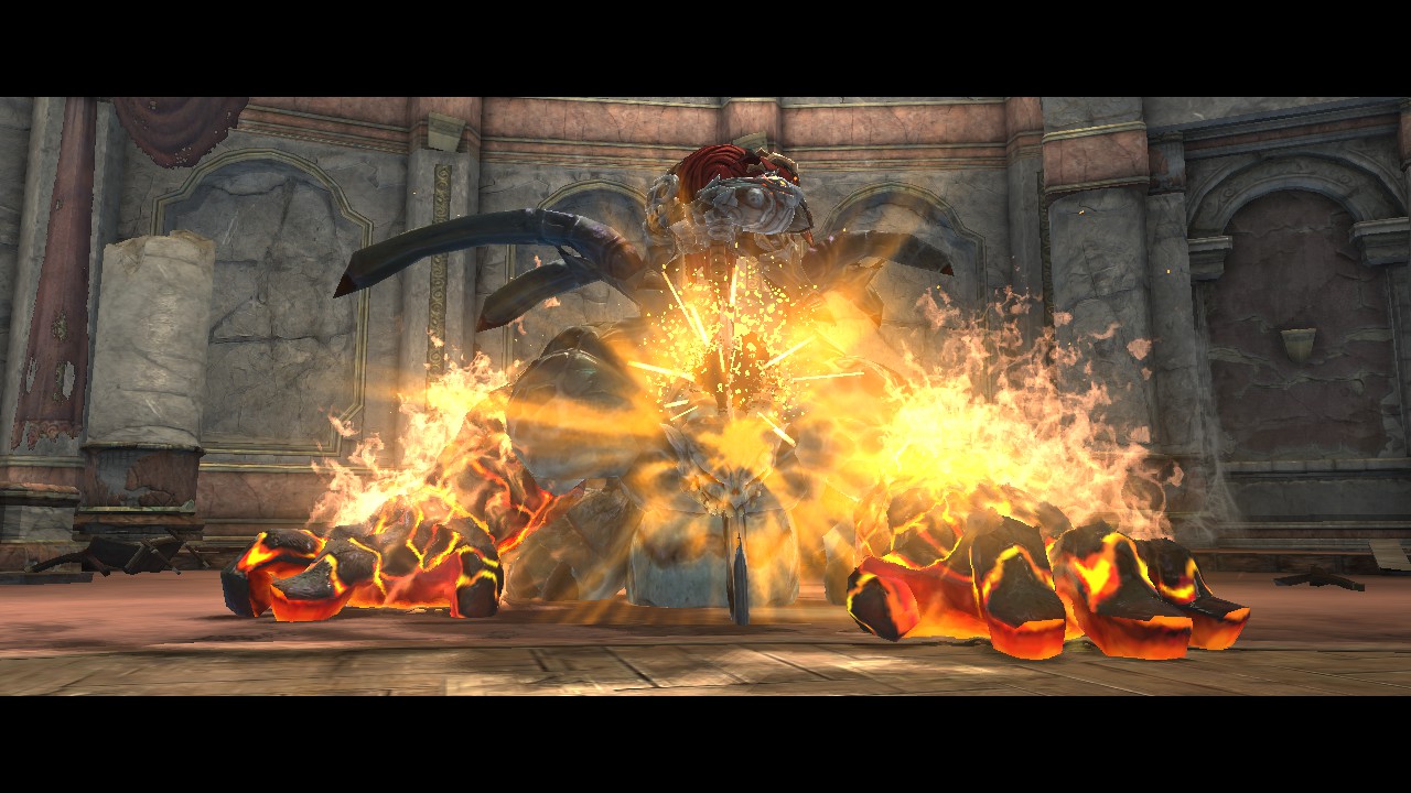 Я не вдавался в подробности как и кого зовут, до Art of The Darksiders я доберусь попозже. Но в начале мне было немного сложно с этой тварью, всё потому, что я не знал, что дэшить/уворачиваться можно много раз подряд, а не один раз лишь (а тайминг в бою очень решает):